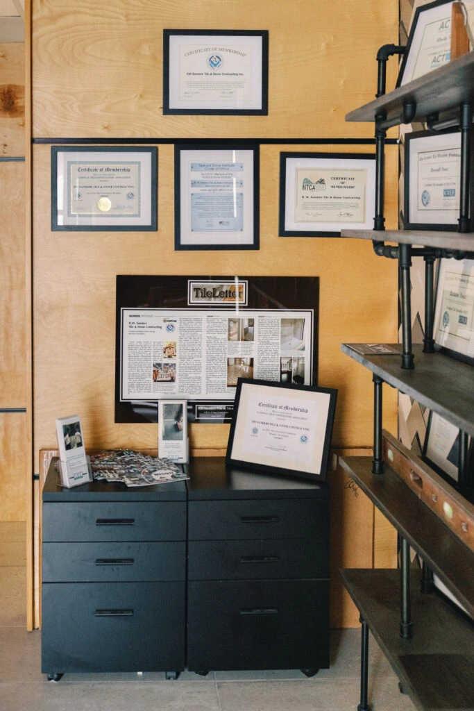 D.W. Sanders follows the highest industry standards by adhering to TCNA and ANSI guidelines, ensuring each project meets benchmarks for quality, safety, and durability. As a licensed and insured company with an excellent safety record and a strong EMR rating, we prioritize client protection and job site safety through ongoing training and inspections. Our CTEF certification highlights our expertise in best installation practices, reinforcing our commitment to superior craftsmanship. We also provide personalized guidance to help our clients choose the right materials for long-lasting, beautiful tile and stone installations.