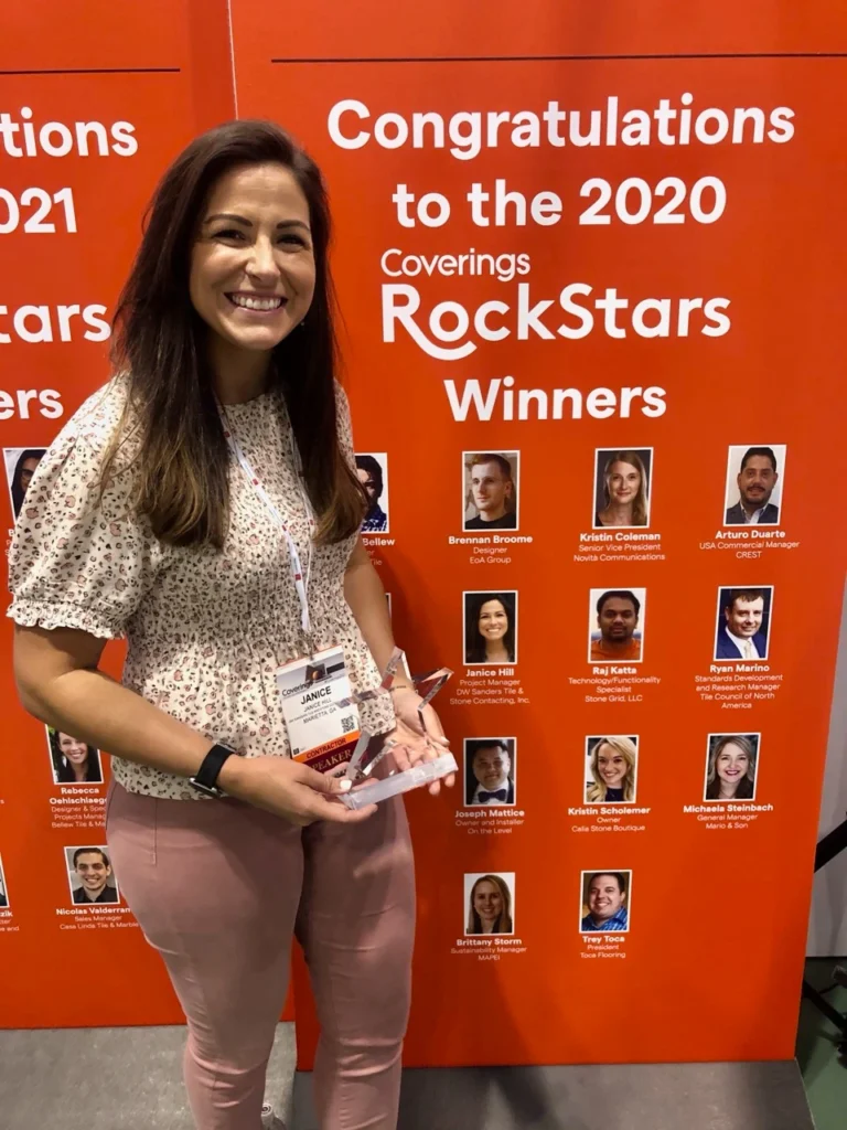 Her participation in the tile industry is not just in the office - Janice is a board member of Women in Tile and sits on the Training & Education Committee for the NTCA, bringing valuable industry insights back to D.W. Sanders Tile & Stone. She also is a 2020 NTCA Rockstar Award recipient.