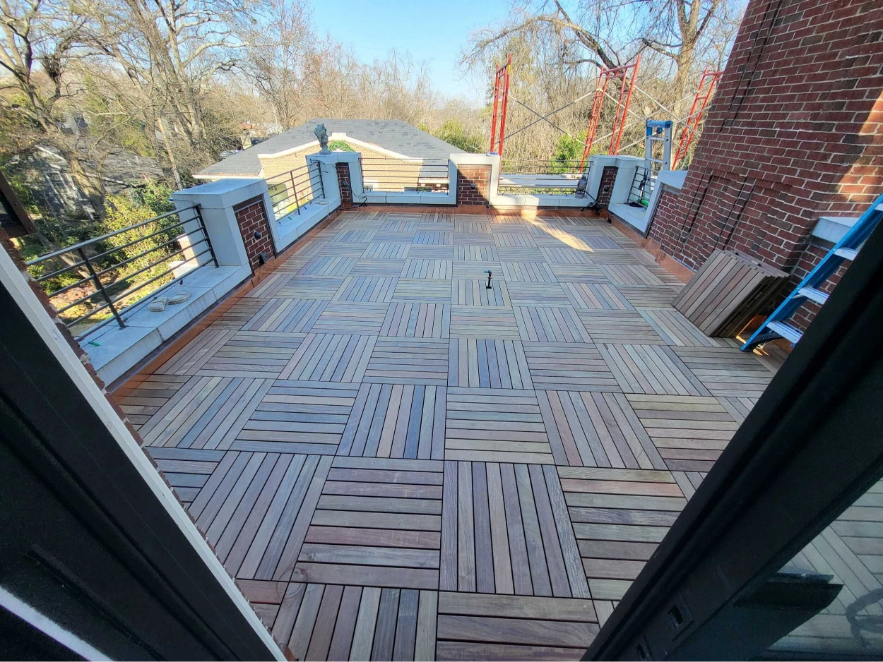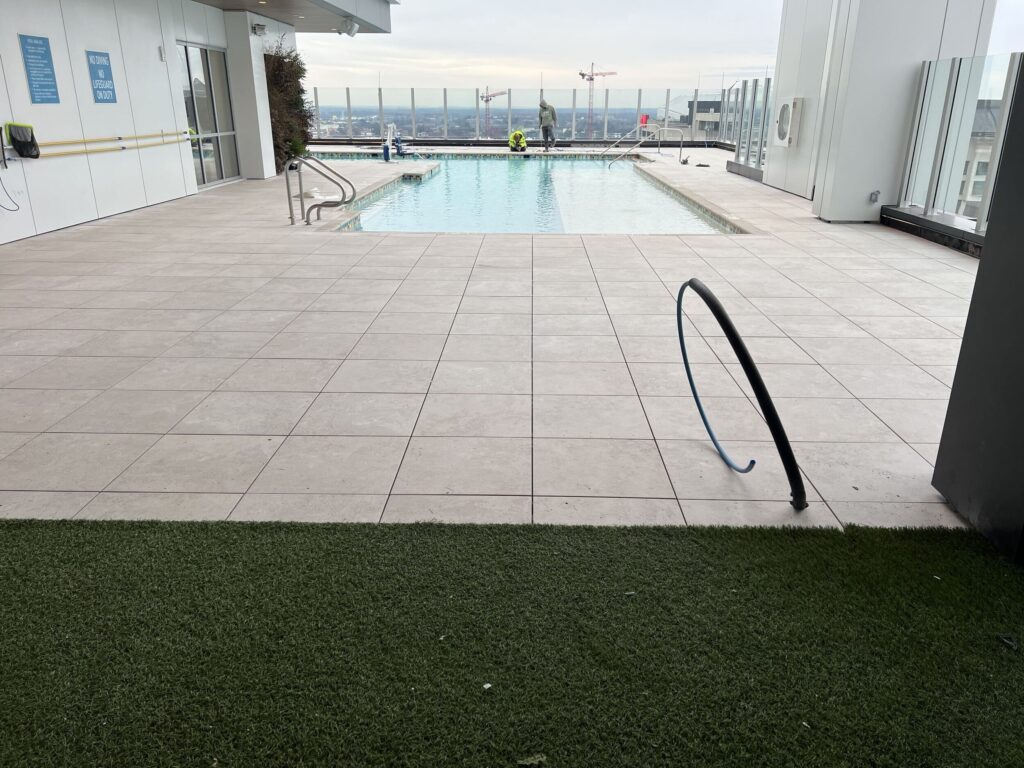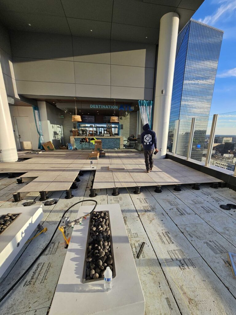 Whether you’re designing a small residential balcony or a sprawling commercial roof deck, we combine technical expertise with an understanding of the details to ensure your elevated exterior deck is installed with best practices. Further we have developed relationships with engineer firms and manufacturers to address wind equalization and needed details for successful installations. Every project is unique with different requirements and is multi steps. Full shop drawings are required and provided that address the placement of pedestal, finished tile and additional details.